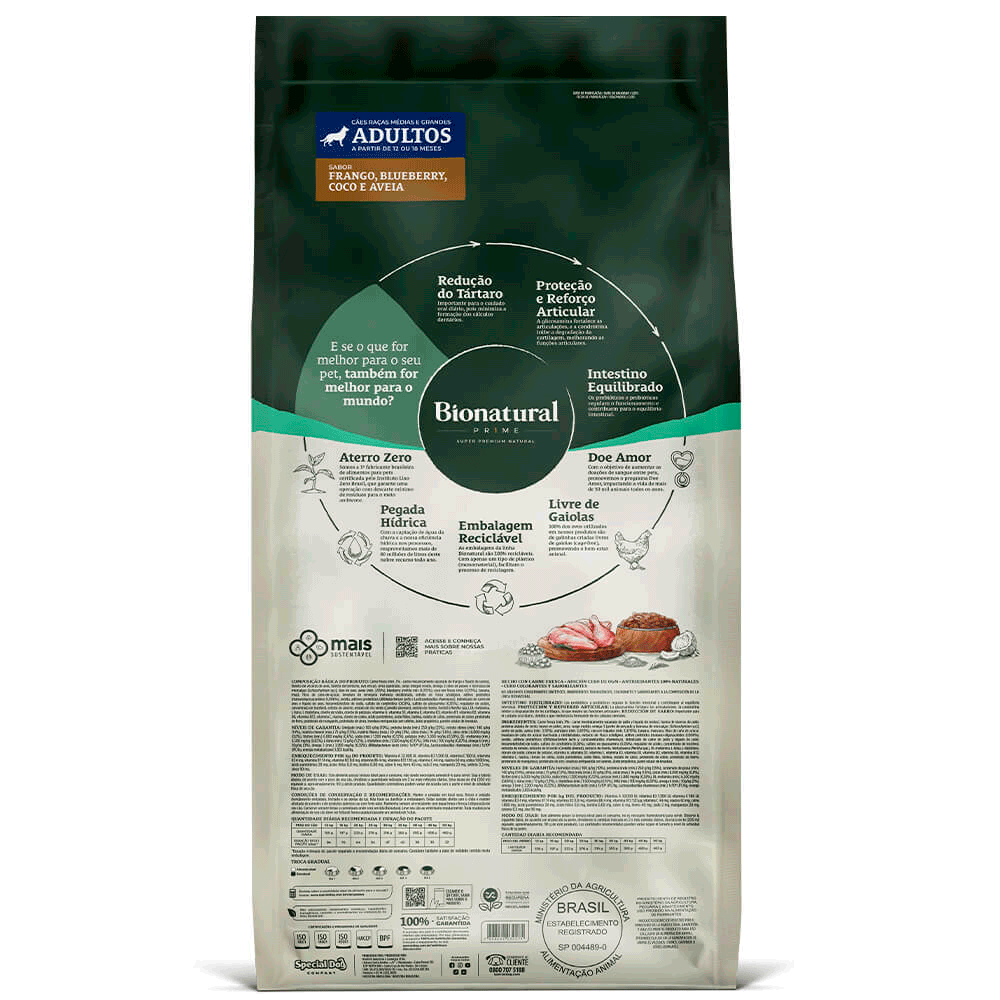 Ração Bionatural Prime Cães Adultos Raças Médias e Grandes Frango