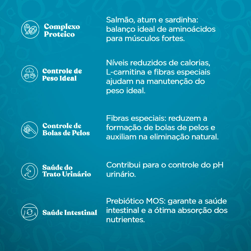 - Sua fórmula exclusiva para os gatos castrados contribui para o controle de peso;