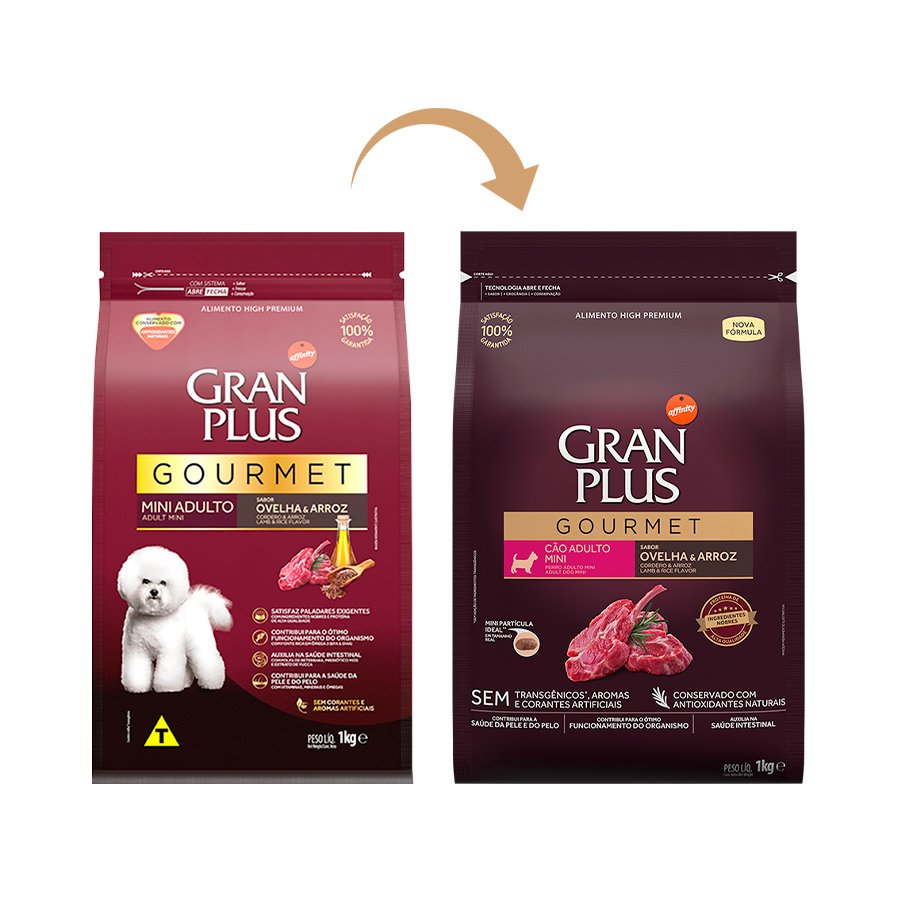 Ração GranPlus Gourmet para Cães Adultos de Porte Mini Sabor Ovelha e Arroz 15 kg