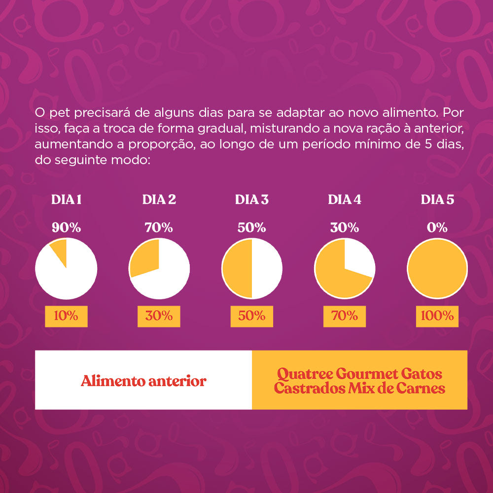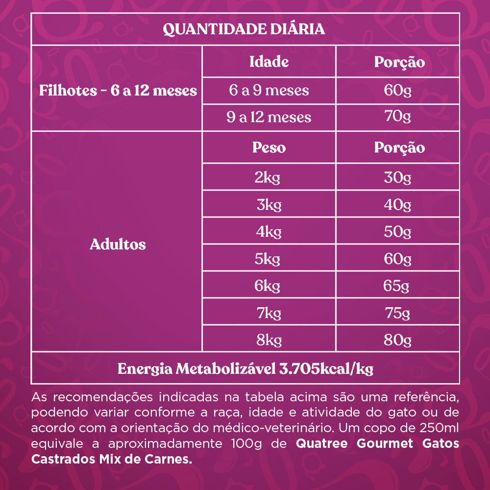 Ração Quatree Gourmet para Gatos Adultos Castrados Sabor Mix de Carnes 3kg