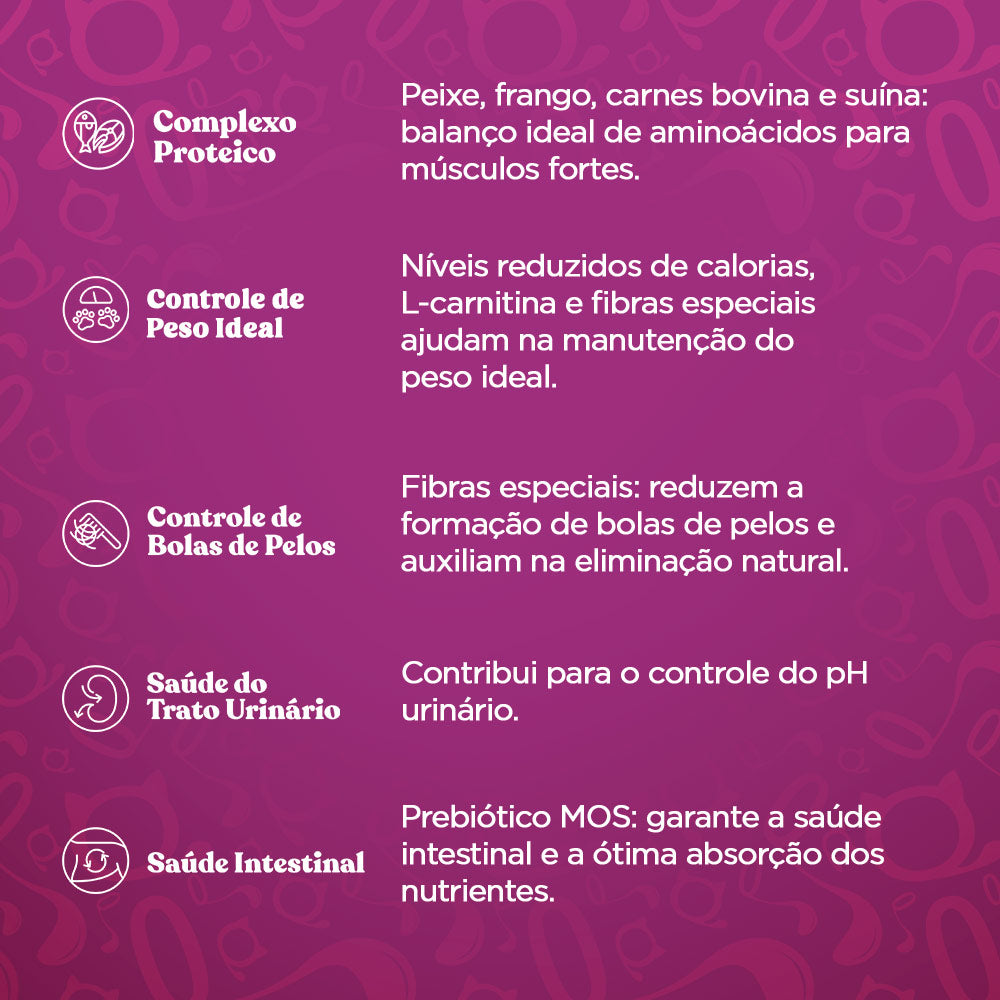 - Reduz formação de bolas de pelos e auxilia na eliminação natural;