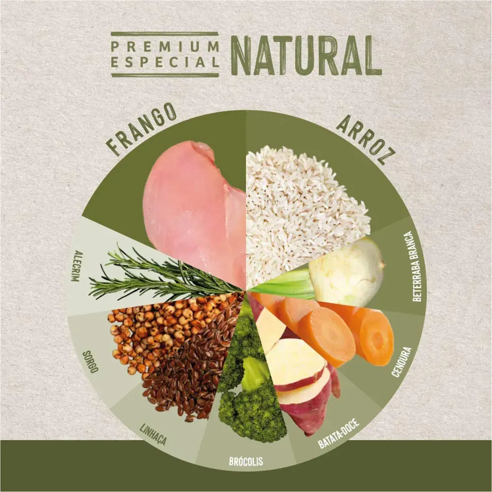 • Ingredientes naturais, sem transgênicos nem corantes artificiais;