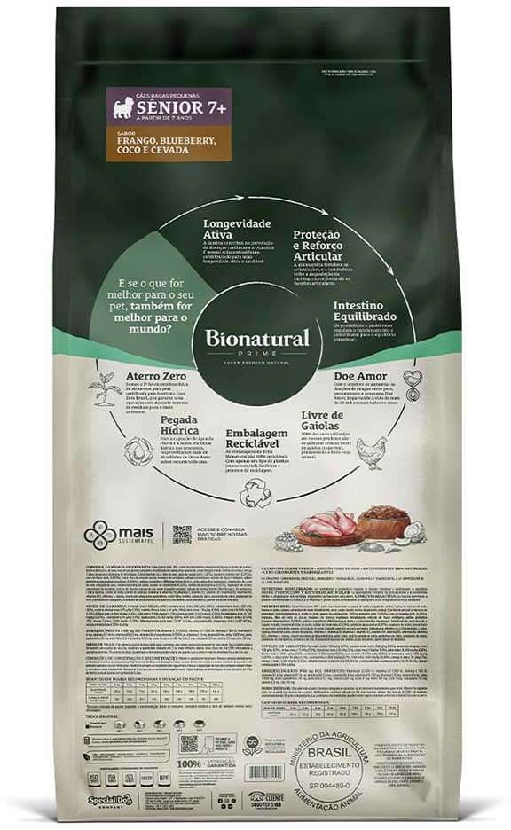 Ração Seca Bionatural Prime Sênior 7+ Frango para Cães Idosos Porte Pequeno