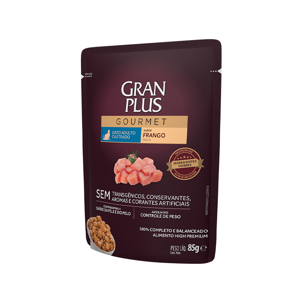 Ração Úmida GranPlus Gourmet Sachê para Gatos Adultos Castrados Sabor Frango 85g