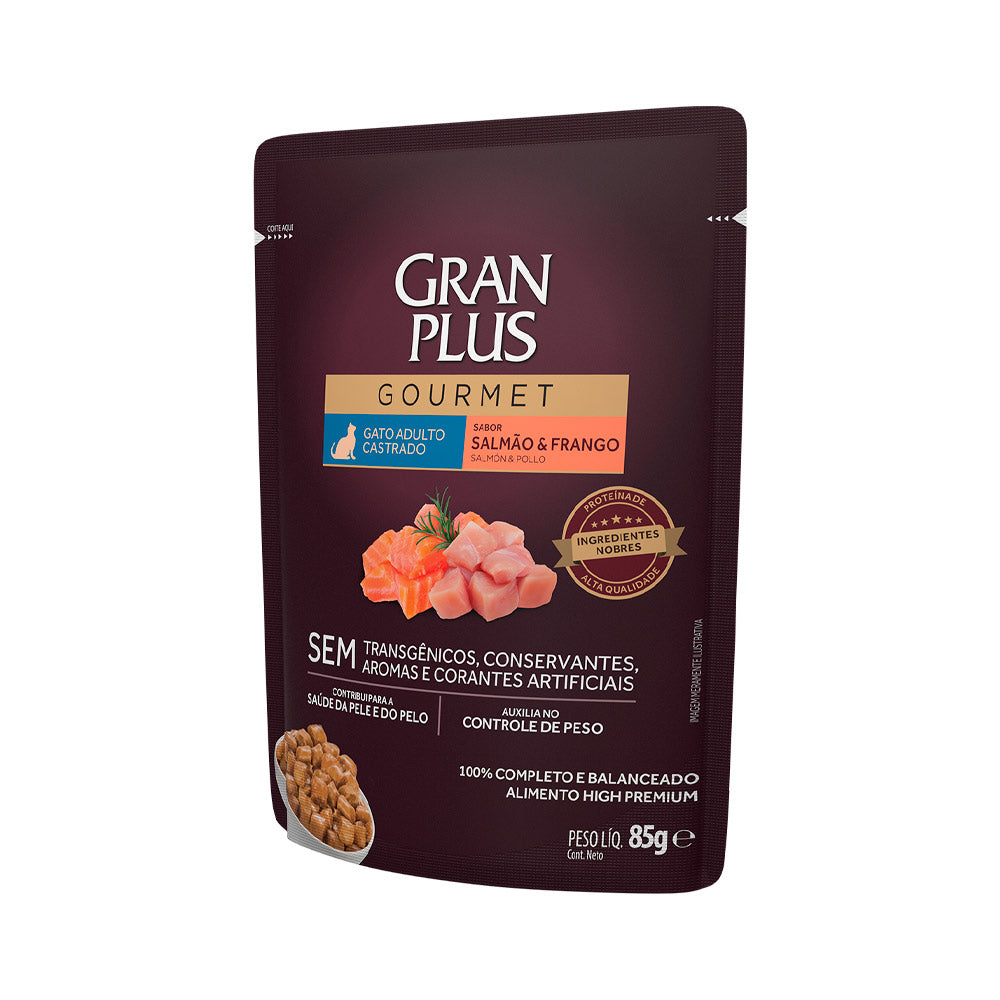Ração Úmida GranPlus Gourmet Sachê para Gatos Castrados Sabor Salmão e Frango 85g