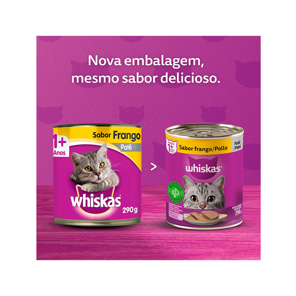 Ração Úmida Whiskas Lata para Gatos Adultos Sabor Frango 290g